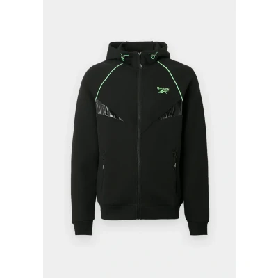 Reebok Classic Sport Street Piping Spacer FULL ZIP Hoodie Zipup sweatshirt, Men's, Size: XS, Black