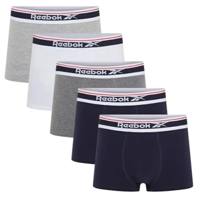 Reebok Jay Boxers for Men Pack of 5 Mens Trunks, Breathable & Stretchable Underwear Multipack Cotton Blend Boxer Shorts, Navy/Dark Grey Marl/White/Grey Marl, S