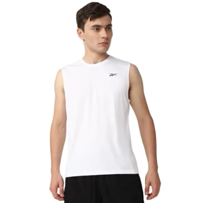 Reebok Men's Train Sleeveless Tech T Shirt, White, XXL