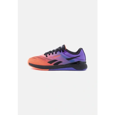 Reebok NANO X5 Unisex Training shoe footwear white/flash orange/royal purple Sale at Zalando UK | Upper material: textile/synthetics/Lining: textile/Sole: synthetics/Insole: textile | Sale order at Zalando UK! Size: 8.5. Color: Footwear white/flash orange/royal purple. Pattern: colour gradient.