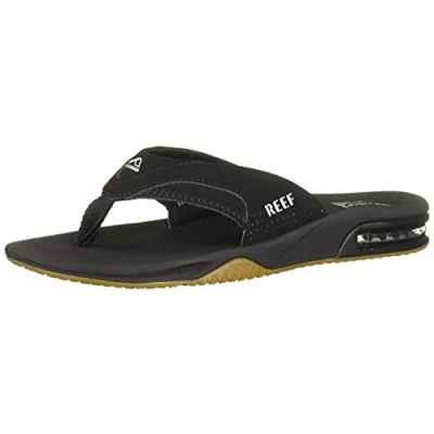 FANNING MEN'S SANDALS: REEF's best selling flip flops for men with a bottle opener in the sole of the sandal. They are handcrafted with a comfortable footbed and anatomical arch support. BOTTLE OPENER: Use the church key bottle opener integrated into the rubber outsole giving you thirst quenching technology (TQT) on the go. REEF is the only men's sandal with a bottle opener. ARCH SUPPORT: Anatomical arch support flip flops for men give you a refreshing feel of satisfaction every time you slip your feet into your Fannings. FOOTBED and AIRBAG: Shock absorbing men's sandals with contoured compression molded EVA foam footbed and 360 degree heel airbag enclosed in soft polyurethane. Padded jersey liner. BEACH FREELY WITH REEF: We are encouraging people around the world to embrace the fun, freedom and spirit of the beach while living life by one simple rule: Beach Freely. Our products are designed to make you feel comfortable, relaxed and free in any environment, whether you're at the beach or not. Strap type: Thong; Target gender: male