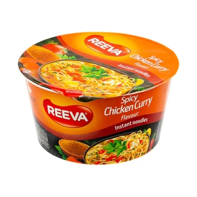 Indulge in the delicious and spicy flavours of Reeva Chicken Curry Instant Noodles! Enjoy the convenience of a quick and tasty snack or lunch that's ready in minutes. With a flavourful combination of chicken curry and ramen noodles, these instant noodles make a tasty yet light meal that's sure to please. Enjoy!. 1 x Reeva Spicy Chicken Curry Instant Noodles 75g. Assorted Pack Sizes. Spicy Chicken Flavour. Instant noodles. Halal