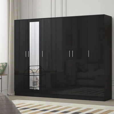 REFLECT Bedroom Furniture Set - 3 Door Mirror Wardrobe + 3 Door Plain Wardrobe REFLECT combines style and practicality with modern furniture designed to elevate your bedroom. This set features a spacious 3 Door Mirror Wardrobe and a large 2 Door Plain Wardrobe , both with soft-close doors and a sleek high gloss finish. Key Features: 3 Door Mirrored & Plain Wardrobe Soft-Close Mechanism: Smooth, quiet operation. High Gloss Finish: Sleek and elegant. Durable Build: High-quality composite materials with melamine veneer. Ample Storage: Includes shelving and hanging rails. Approximate Dimensions: Height: 180cm x Width: 113cm x Depth: 47cm Why Choose REFLECT? Coordinated high gloss finish across all pieces, creating a sleek and modern bedroom look. Maximized storage solutions with spacious wardrobes and soft-close doors for smooth, quiet operation. Durable and long-lasting build, crafted from high-quality composite materials with melamine veneer. Modular Design: Wardrobes can be placed on
