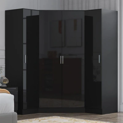 REFLECT Bedroom Furniture Set - 2 Door Corner Wardrobe + 1 Door Plain Wardrobe REFLECT combines style and practicality with modern furniture designed to elevate your bedroom. This set features a spacious 2 Door Corner Wardrobe alongside a sleek 1 Door Plain Wardrobe , all finished in a stunning high gloss that complements any contemporary space. Key Features: 2 Door Corner Wardrobe Spacious Corner Design: Maximizes bedroom corner space efficiently. High Gloss Finish: Adds a modern touch to your room. Durable Build: Crafted from high-quality composite materials with a melamine veneer. Ample Storage: Includes shelving and hanging rails for versatile storage. Approx. Dimensions: Height: 180cm x Width: 103cm x Depth: 103cm Note: This corner wardrobe does not feature soft-close doors. 1 Door Plain Wardrobe Soft-Close Mechanism: Smooth, effortless access to your stored items. High Gloss Finish: Sleek and modern appearance. Durable Build: High-quality composite materials with melamine