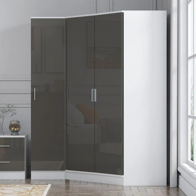 Reflect Bedroom Furniture 2 Door CORNER Wardrobe + 1 PLAIN in Gloss Grey/Matt White