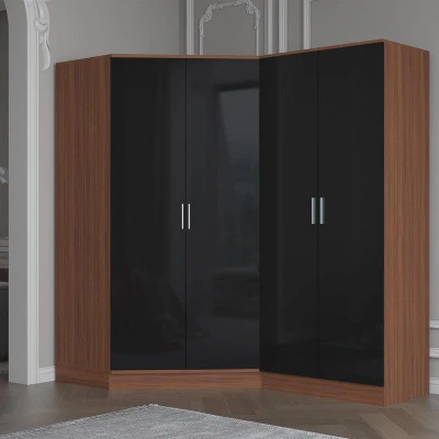 Reflect Bedroom Furniture 2 Door CORNER Wardrobe + PLAIN in Gloss Black/Walnut