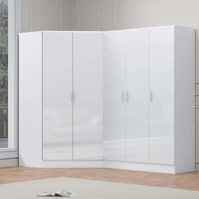 Reflect Bedroom Furniture 3 Door PLAIN Wardrobe + 2 CORNER in Gloss White/Matt White