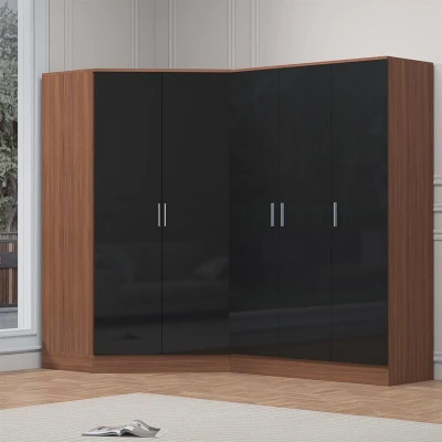 Reflect Bedroom Furniture 3 Door PLAIN Wardrobe + 2 CORNER (Single Set) in Gloss Walnut/Black