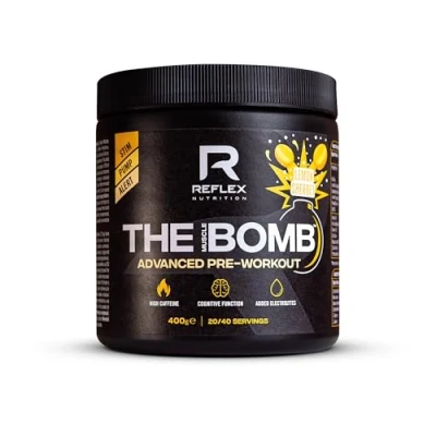 Unleash Explosive Energy with Reflex Stimulant Pre Workout: power through your workouts with 350mg of caffeine per pre workout powder serving - Enhancing focus and combating fatigue for unmatched intensity and performance in every strength session Citrulline Malate for Pump Pre Workout and Energy Boost: blood and guts pre workout with 9g of Citrulline Malate (6g active Citrulline) to increase Nitric Oxide production, improving blood flow and delivering muscle pumps that showcase your hard work Strong Pre Workout with Beta-Alanine for Workout Endurance: 2.5g of Beta-Alanine provided in each pre workout shot can help buffer lactic acid, delaying muscle fatigue and allowing you to push through extra reps and reach new performance heights Amino Acid Powerhouse Energy Supplements: the Muscle Bomb gym pre workout includes L-Tyrosine, L-Taurine, and essential Amino Acids, building blocks of protein, ensuring you are always at your best (dope pre workout!) Preworkout + Added Electrolytes for Hydration: stay hydrated and perform at your peak with an added blend of essential electrolytes that help maintain fluid balance during intense strength training - High Stimulant Pre Workout without Creatine Unmatched Flavour & Mixability: enjoy your pre workout shots in explosive flavours like Blue Raspberry (caffeine pre workout) and Lemon Sherbet (caffeine free) with easy mixability and no clumps, making it a convenient addition to your routine