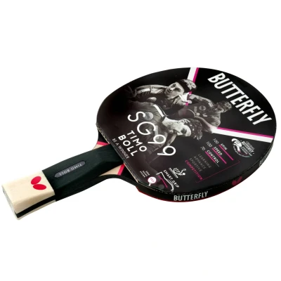 AmazonThe Timo Boll SG99 Table Tennis Bat from Butterfly – one of the world’s leading brands. A bat offering good speed and spin for powerful competitive play Speed: 100, Spin: 100, Control: 70 Butterfly ITTF Approved Wakaba Red and Black Addoy rubber with 1.8mm sponge ‘Smart Grip’ – innovative handle designed to improve grip and feel of the ball
