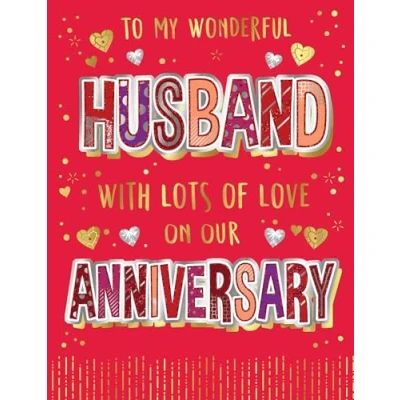 Regal Publishing Anniversary Card, To My Wonderful Husband 8 x 6 inches