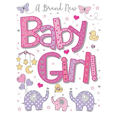 High quality greeting card and envelope Caption: Baby girl Description: Pizzaz Baby Girl Approximate size (inches): 8 x 6 Designed and made in the UK