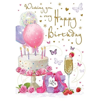 A High Quality Greeting Card and Envelope From Regal Publishing Designed and made in the UK - supporting British jobs Caption: Birthday Description: Cake and balloons Approximate size (inches): 9 x 6