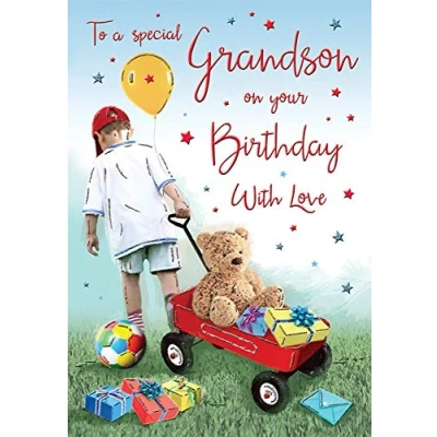 A High Quality Greeting Card and Envelope From Regal Publishing Designed and made in the UK - supporting British jobs Caption: Grandson Description: ST Grandson Toy cart Approximate size (inches): 9 x 6