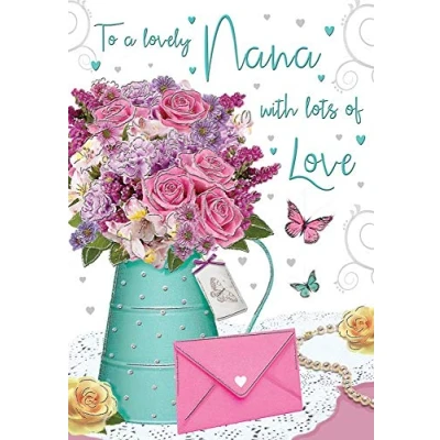 A High Quality Greeting Card and Envelope From Regal Publishing Designed and made in the UK - supporting British jobs Caption: Nana Description: Flowers in a jug Approximate size (inches): 9 x 6