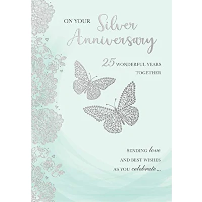A High Quality Greeting Card and Envelope From Regal Publishing Designed and made in the UK - supporting British jobs Caption: Anniversary Silver Your Description: Eter Anniv Silver Your butterfly Approximate size: 9 x 6 inches