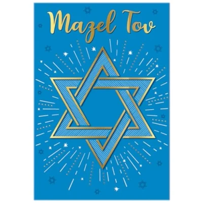A High Quality Greeting Card and Envelope From Regal Publishing Designed and made in the UK - supporting British jobs Caption: Mazel Tov Description: Star Approximate size: 7 x 5 inches
