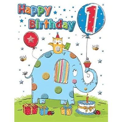 A High Quality Greeting Card and Envelope From Regal Publishing Designed and made in the UK - supporting British jobs Caption: Age 1 M Description: Elephant Approximate size (inches): 8 x 6