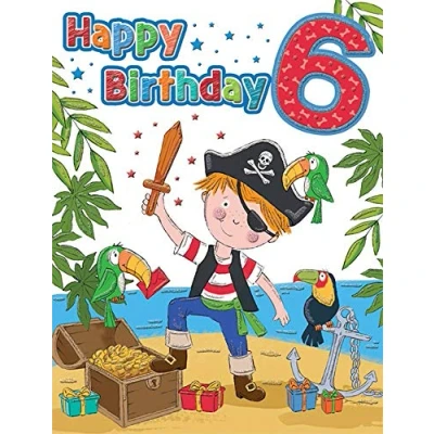 High quality greeting card and envelope Caption: Age 6 M Description: Pirate Approximate size (inches): 8 x 6 Designed and made in the UK