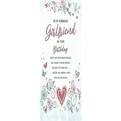 A High Quality Greeting Card and Envelope From Regal Publishing Designed and made in the UK - supporting British jobs Caption: Girlfriend Description: Nova Girlfriend Heart blossoms Approximate size: 9 x 6 inches