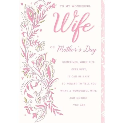 A High Quality Mother's Day Greeting Card and Envelope From Regal Publishing Designed and made in the UK - supporting British jobs Caption: Wife Description: Floral pattern Approximate size: 9 x 6 inches