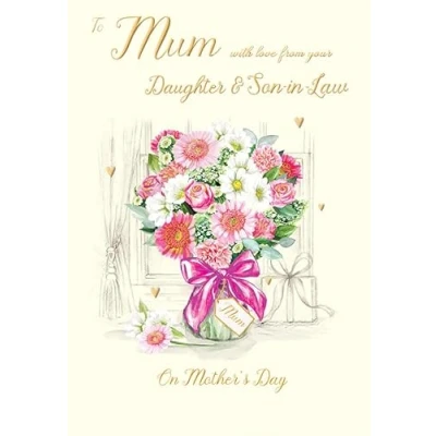 A High Quality Mother's Day Greeting Card and Envelope From Regal Publishing Designed and made in the UK - supporting British jobs Caption: Mum from Daug & SIL Description: Bouquet Approximate size: 9 x 6 inches