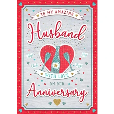 A High Quality Greeting Card and Envelope From Regal Publishing Designed and made in the UK - supporting British jobs Caption: Anniv Husband Description: Anniv Husband Heart &champagne Approximate size: 10 x 7 inches