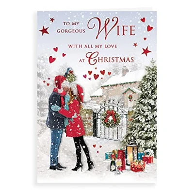 A High Quality Christmas Greeting Card and Envelope From Regal Publishing Designed and made in the UK - supporting British jobs Caption: Wife Description: Couple kissing Approximate size: 9 x 6 inches