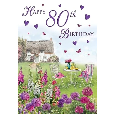 A High Quality Greeting Card and Envelope From Regal Publishing Designed and made in the UK - supporting British jobs Caption: Age 80 F Description: Cottage scene Approximate size: 9 x 6 inches