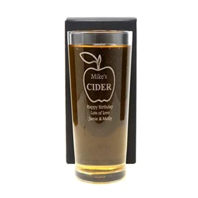Regalo Personalised Engraved Pint Glass Apple Cider Design (Cardboard Gift Box)