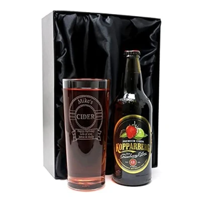 Regalo Personalised Engraved Pint Glass & Cider Gift Set Design (Kopparberg Strawberry Lime Cider, Silk Lined Box)