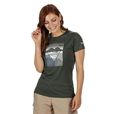 Regatta Fingal V Lightweight and Breathable Technical Short Sleeve T Shirt with Printed Polos/Jackets Women, Neon Pink Marl, FR: 2XL (Manufacturer's Size: 20)
