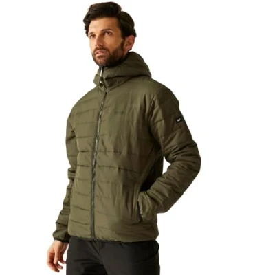 Amazon Recycled 100% polyester fabric Durable water repellent finish Medium weight Warmloft down-touch water repellent insulation Grown on hood Inner zip guard 2 lower pockets Stretch binding to cuffs and hem Made with recycled materials