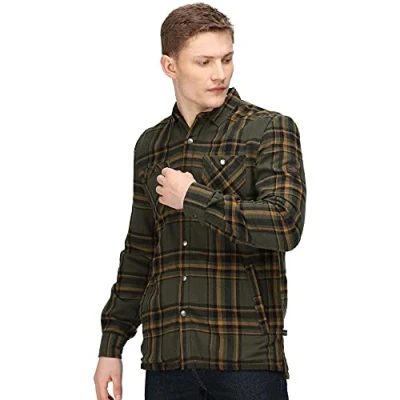 Regatta Men's Thamos Shirt, Dark Khaki Checked, M