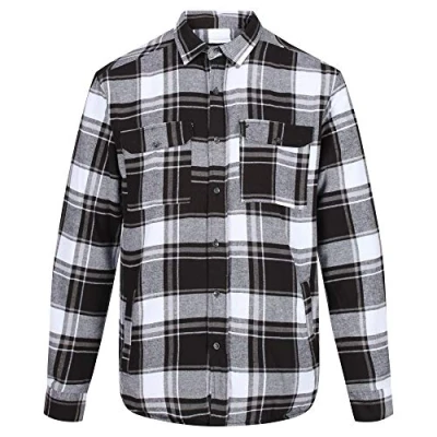 Regatta Men's Tygo Shacket Coolweave Cotton Checked Fleece Lined Over Shirt Shirts Black