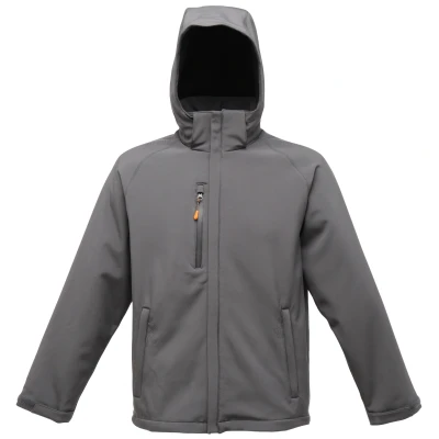 Warm backed softshell fabric. Durable water repellent finish. Mesh lined body. 2 zipped lower pockets and waterproof chest pocket. Detachable hood with adjuster. Articulated sleeve design. Adjustable cuffs. Adjustable shockcord hem. Concealed zip entrance in lining for embroidery access. Weight: 500g/m. Fabric: See features. 96% polyester/4% elastane.