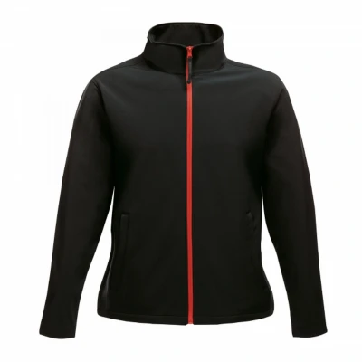 100% Polyester. Warm backed woven softshell jacket. Printable softshell fabric. Wind resistant membrane fabric. Durable water repellent finish. Inner zip guard, 2 lower pockets and adjustable shockcord hem.