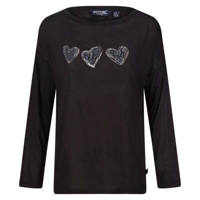 Regatta Womens/Ladies Carlene Hearts Long Sleeved T Shirt (Black) Cotton Size 12 UK