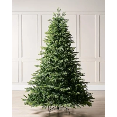 8 ft artificial Regent Pine Christmas tree Realistic fullness with PE/PVC mixed tips 165 cm base diameter for festive presence Hinged sections for quick setup and storage Ideal for string lights, ornaments and tinsel