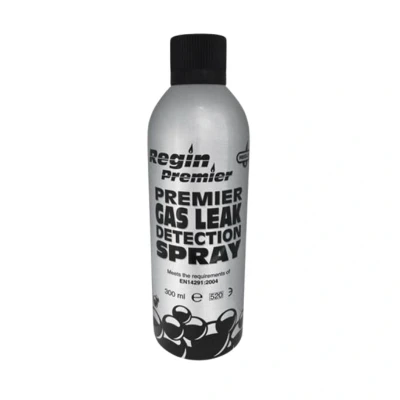 Regin - Premier Leak Detection Spray - 300ml (REGL01). Meets the requirements of EN14291:2004. Safe detection of positive leaks. Non-staining, non-corrosive, stable and safe to use. Suitable for use with most gases. Compatible with most metals and plastics. Specially equipped with a 360 ̊ valve to enable use at all angles, even upside down. Water based. Clean and safe in use. Non-Flammable. Fast and easy application. Genuine brand new Regin product, covered by a Regin manufacturer's guarantee.