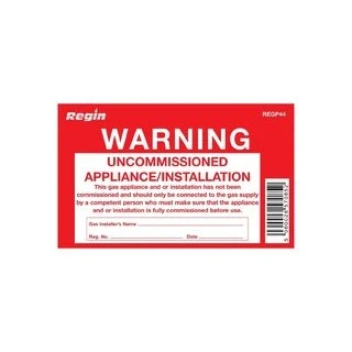 Direct Heating SparesRegin REGP44 Uncommissioned Appliance Tag - Pack of 8. Genuine brand new Regin Heating Supplies product, covered by a Regin Heating Supplies manufacturer's guarantee.