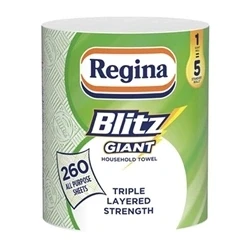 Regina Blitz Giant 1 Roll Multi Purpose Household Towel, 3 Ply, 260 Sheets Per Roll, Triple Layered Strength, Towels Made With Virgin Pulp, Recyclable Paper Packaging, and FSC Certified