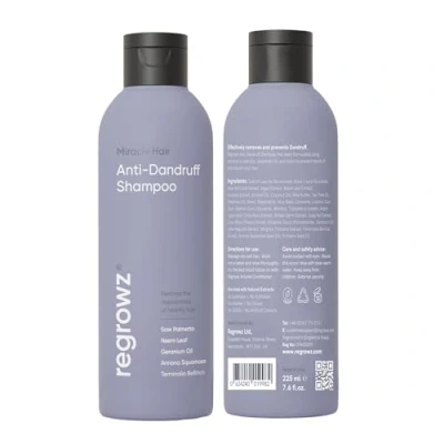 Effective Anti-Dandruff Treatment – Regrowz Anti-Dandruff Shampoo is specially formulated to eliminate dandruff, soothe itchy scalps, and reduce flakes, leaving hair clean, refreshed, and healthy-looking. Hydrating & Restoring Dry Scalp Shampoo – Deeply nourishes and moisturises dry, flaky scalps, helping to restore natural hydration and promote vibrant, healthy hair. Suitable for All Hair Types – This gentle yet powerful formula is safe for all hair types, providing effective relief from dandruff without irritation. A perfect anti-dandruff shampoo for both men and women. Shop now for a clearer scalp! Made for Quality Assurance –With high-quality ingredients, Regrowz Anti-Dandruff Shampoo delivers effective results while prioritising safety and sustainability. Try The Regrowz Range Today – Trusted by thousands of happy customers across the UK who have experienced clearer, healthier scalps and refreshed hair!