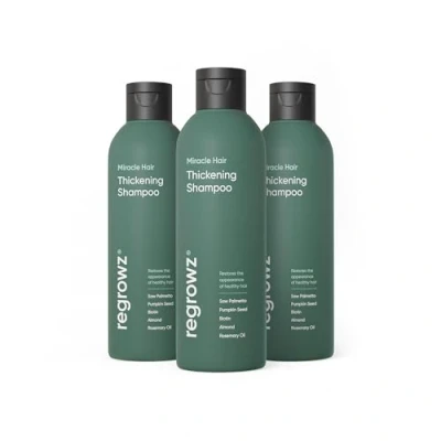 Hair Growth Shampoo – Our fast-acting hair growth shampoo is specially formulated to deliver fuller, stronger, and healthier-looking hair with proven results, redefining your hair care routine. Natural & Plant-Based Hair Treatment – Infused with biotin, argan oil, and pumpkin seed oil, this hair thickener shampoo acts as a powerful DHT blocker, promoting overall scalp health. Biotin Shampoo Strengthens & Nourishes Hair – Packed with essential vitamins and minerals, this formula enriches hair while the naturally added biotin supports growth and improves overall hair health. Try it today! Suitable for All Hair Types – Ideal for women and men with fine, thinning, or dry hair. Safe for colour-treated and chemically processed hair, this formula is the perfect hair loss treatment for both genders. Sulfate-Free & Gentle Formula – This shampoo is free from harsh sulfates, ensuring a gentle cleansing experience that won't strip your hair of its natural oils, making it ideal for daily use without causing irritation. Try The Regrowz Range Today – Trusted by thousands of happy customers across the UK who have experienced thicker, stronger, and healthier hair.