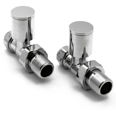 General description Pair of straight manual radiator valves designed for modern heating systems. Made from high-quality brass and finished in chrome, these valves provide both functionality and aesthetic appeal. Technical specifications Material: Brass Finish: Chrome Valve Type: Manual Position: Straight Pipe Size: 15mm Handle Type: Round EAN Barcode: 5081304266854 Manufacturer Part Number: VLV-PRT/S Other information Supplied with a 1-year guarantee from the manufacturer