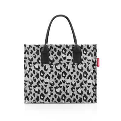 Large main compartment with metal snap closure 1 inner pocket with zip, 1 side pocket inside Base with PE plastic plate (foldable) 2 lightly padded carrying handles Box contents: 1 x reisenthel daily shopper in leo nero, spacious handbag and shopping bag, dimensions in cm: 42 x 35 x 17, volume: 14 litres