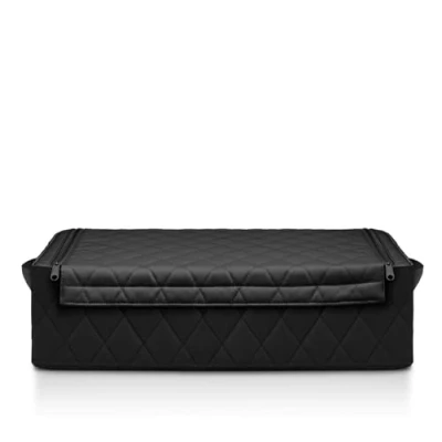 Closable with 2 zips and velcro closure. 2 carrying handles Dimensionally stable construction with foldable wire internal frame Perfect for under the bed or on the wardrobe