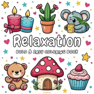 Relaxation bold and easy coloring book: for Adults Teens Featuring Cozy Items in Cute Groovy Designs, Simple Big Drawings Stress Relief Relaxation.