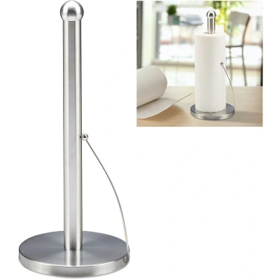 Relaxdays 10030705 Küchenrollenhalter stehend Standing Brushed Stainless Steel Paper Roll Holder for Kitchen H x D 35 15 cm Silver, 18/8