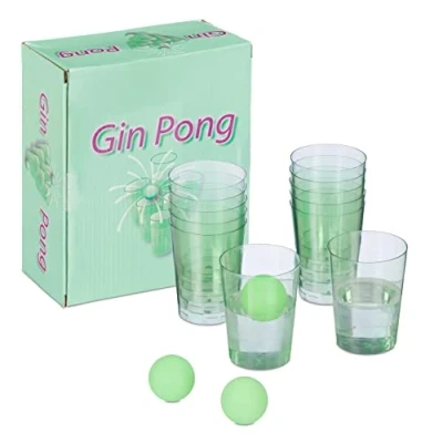 Game set: trendy gin pong game with 12 cups and 3 balls - volume of each cup approx. 250 ml Popular: classic beer pong game reinterpreted - played with the trendy drink gin and tonic Simple rules: ping pong balls sink into cups - opponent must empty contents in a sip Party fun: cool drinking game is well received at any party - for birthdays, student parties and much more. Gift: The schnapspong game is a great gift idea and guaranteed to delight gin lovers, Manufacturer: Relaxdays
